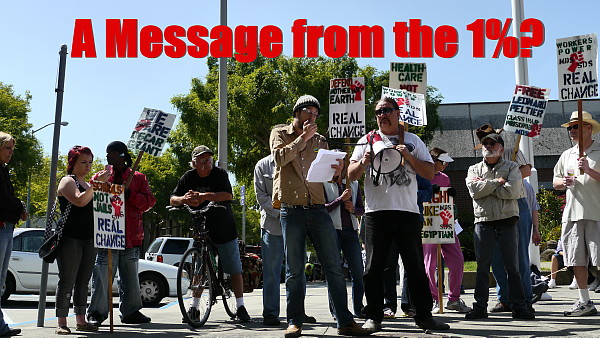The backdrop for all of this was a cluster of investors engaged in bidding on foreclosed properties on the steps of City Hall. The 1% serving as a backdrop for the 99%? This was apparently not just an ironic juxtaposition. It appears to have been a genuine source of friction caused by two diametrically opposed ideologies bumping. As a mater of fact, the foreclosure auctioneer offering his inventory to investors felt compelled to make a not so friendly gesture at the protesters...repeatedly. I guess some things have not changed very much.